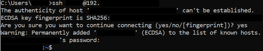 해당 명령어로 SSH를 통해 접속하신 뒤, 비밀번호를 입력하면 됩니다.