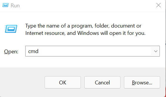윈도우 + R키로 실행창을 띄우신뒤, cmd를 입력하고 실행시켜 줍니다.