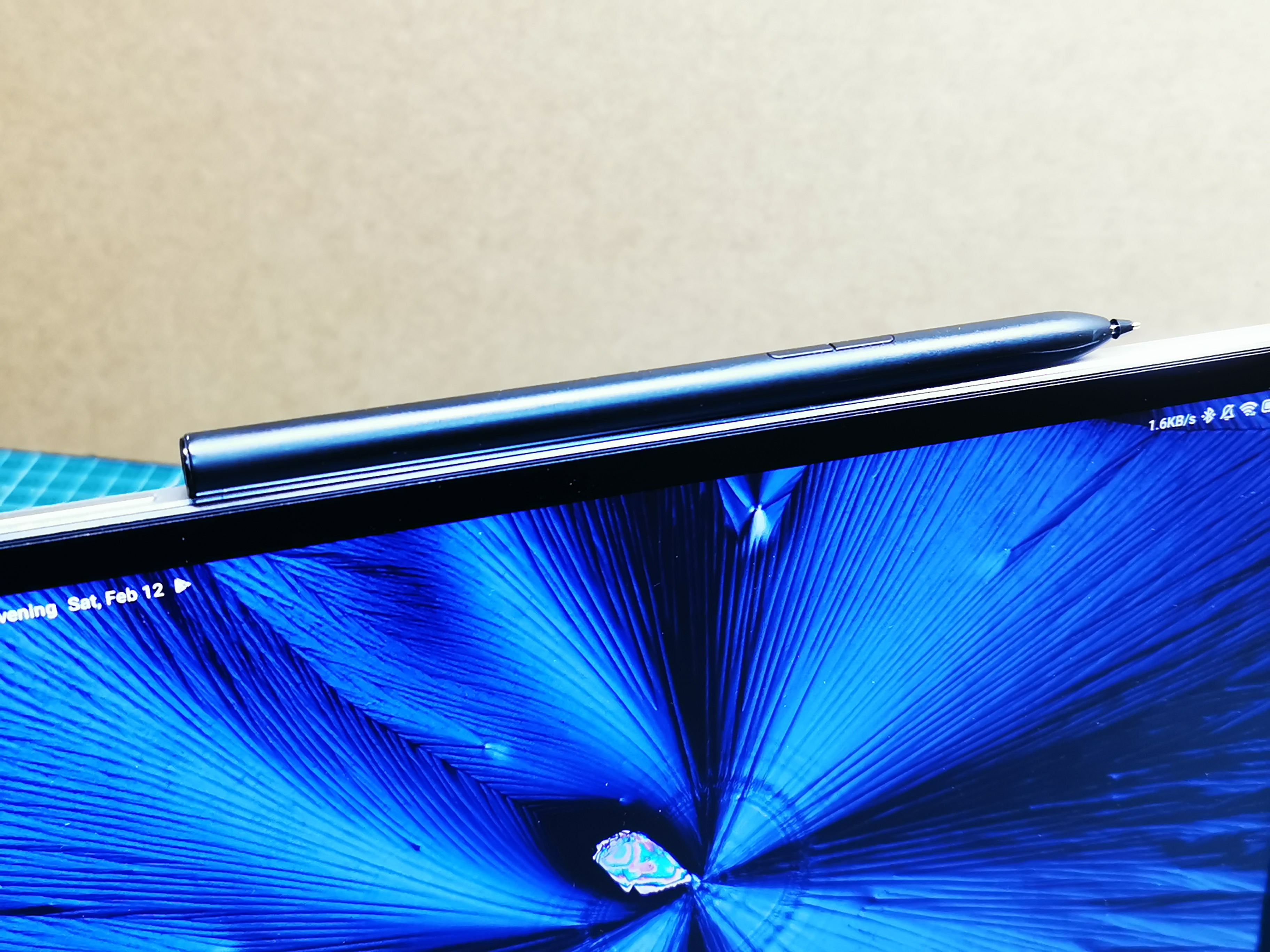 스타일러스가 자석으로 도킹되어, 가까이 가져가면 알아서 붙기는 하지만